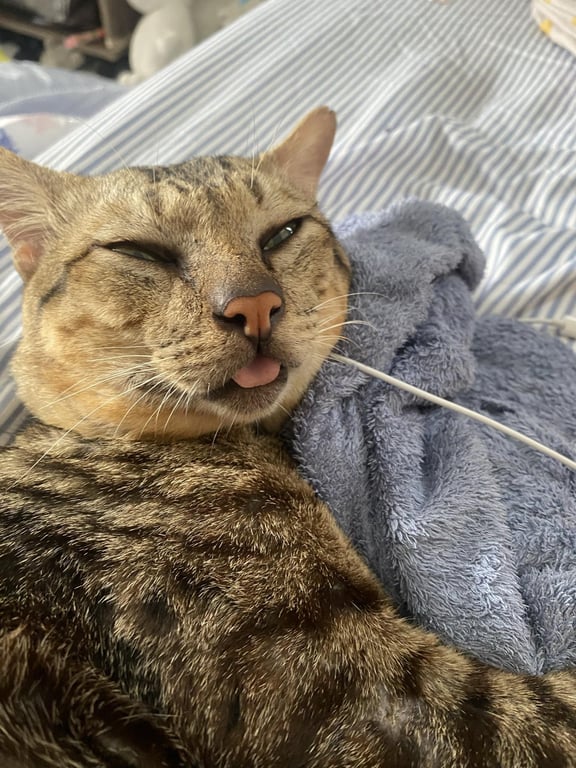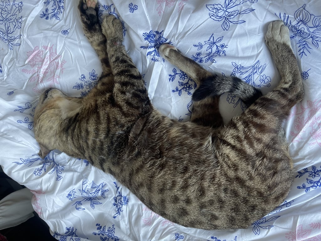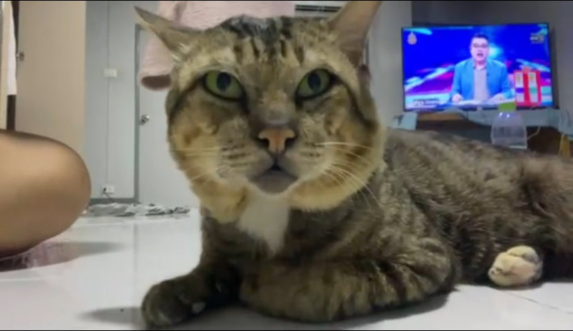 รอยตำหนิ: มีปลอกคอสีแดง กระดิ่ง เท้าด้านหลังมีรอยด่างๆสีขาวขี้อ้อน