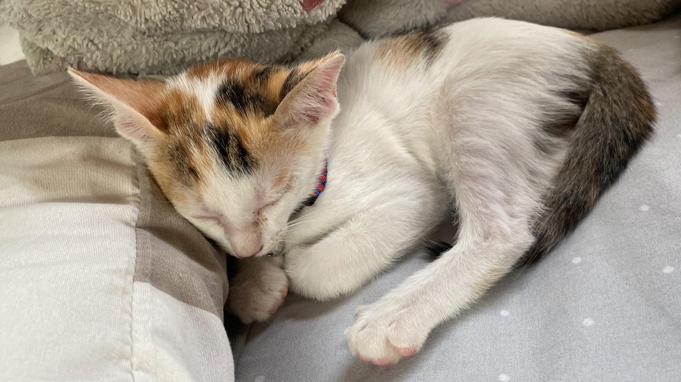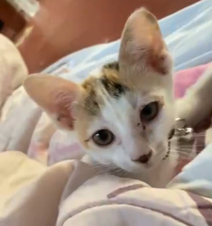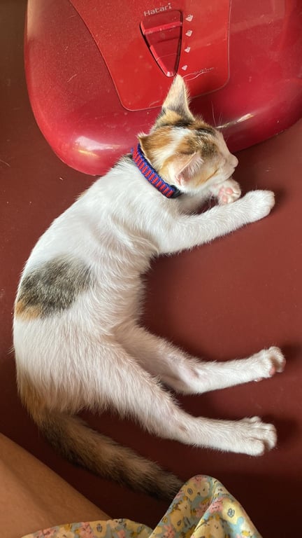 รอยตำหนิ: จมูกดำนิดหน่อยน้องติดคน ไม่ค่อยหวงตัว ชอบเล่นมาก ใส่ปลอกคอสีแดงสลับน้ำเงินมีกระดิ่ง