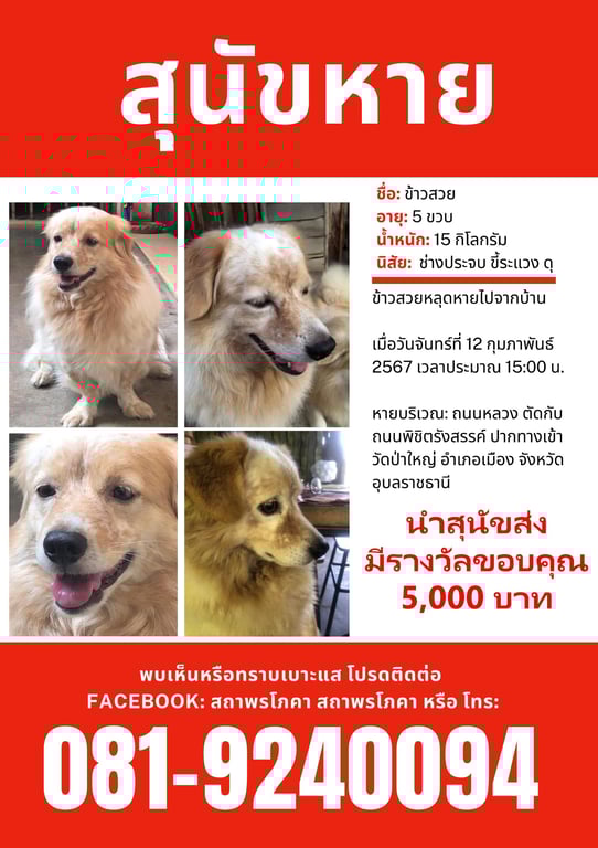 รอยตำหนิ: ขาแบะ หูไม่ตั้ง บริเวณหน้าและขาหน้ามีจุดสีน้ำตาลจำนวนมาก