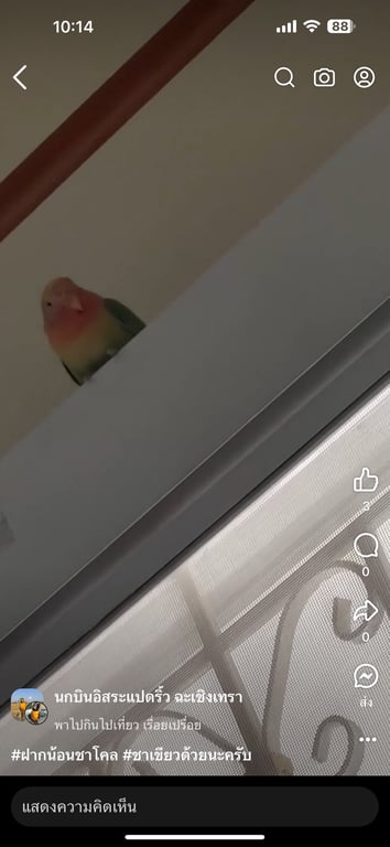 สี: ตัวสีเขียว หัวสัชมพู ขอสีส้มเหลือง