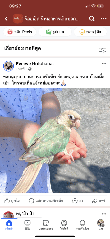 รอยตำหนิ: ขนยังขึ้นไม่เต็มเข้ากับคนง่าย ไม่ดุ ยังเป็นลูกป้อน อาหารเองไม่ได้