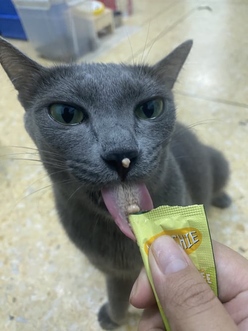 รอยตำหนิ: ปลายหางและขาด้านในมีลายสลิดบางๆ ปลายหางหักเป็นปมเล็กๆทรงตัวไม่ค่อยอยู่ เดินเป๋ๆ กะระยะไม่ค่อยเป็น เคยถูกรถชนตอนยังเป็นแมวจร รักษาหายแล้ว ปัจจุบันวิ่งเดินขับถ่ายได้ แต่การทรงตัวจะไม่100% เป็นแมวน่ารักกับคน ร้องเสียงเบาๆ บางทีอ้าปากร้องแต่ไม่มีเสียง