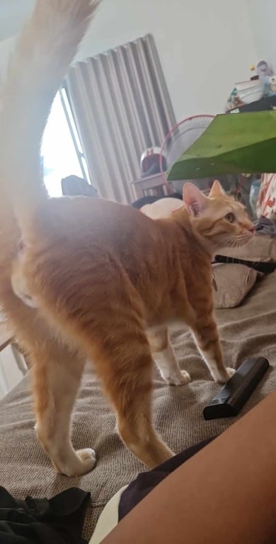รอยตำหนิ: หางตรง ขนตรงท้องยาวปลอกคอสีชมพู มีเบอร์โทรศัพท์ติดต่อ