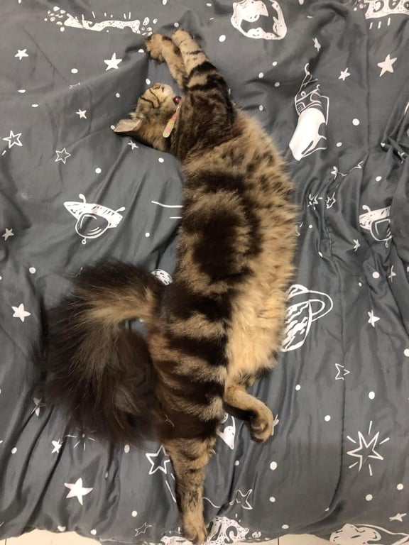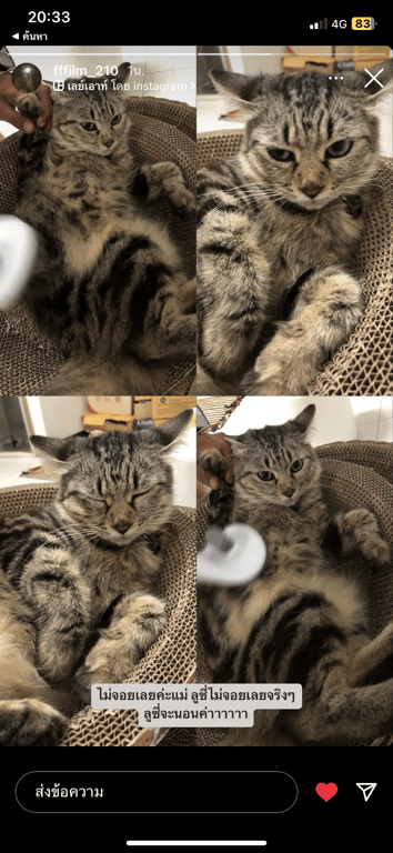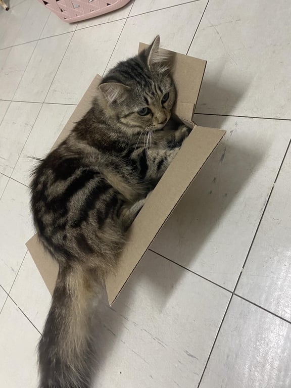 รอยตำหนิ: หางฟูๆ จมูกดำๆหน่อย น้องเป็นลูกผสม อดมริกันช็อตแฮร์ผสมเปอร์เซียน้องเป็นแมวขี้กลัว ตกใจ เป็นแมวที่คุ้นคน ไม่ค่อยรู้เรื่องโลกภายนอก กลัวว่าเจอหมา จะไม่รู้ว่าอันตรายเวลาพาไปข้างนอกเดินเล่นจะมีสายจูงเดินไปเที่ยวตลอด