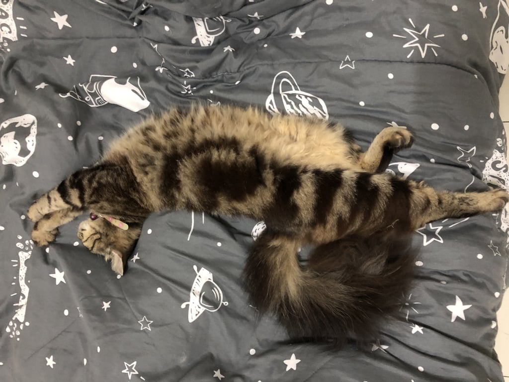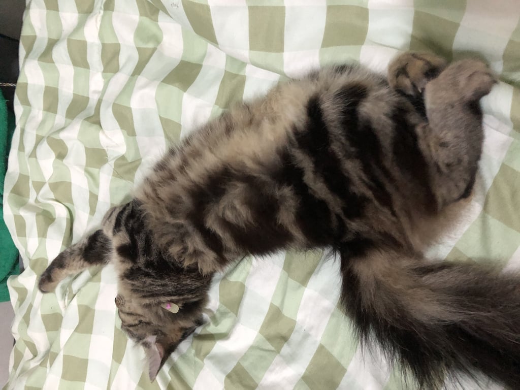 รอยตำหนิ: ขนหูยาว จมูกดำ หางฟูน้องใส่ปลอกคอสีเหลืองใสมีลายหัวใจสีชมพูม่วง กลางคืนจะเรืองแสงสีเขียว น้องขนฟู ขนยาว เป็นแมวขี้กลัว