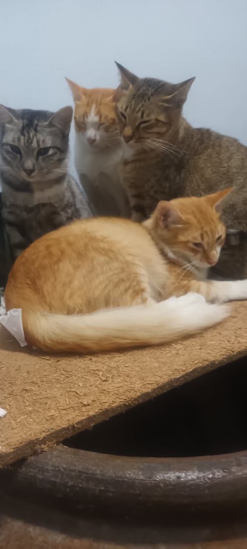 รอยตำหนิ: หน้าขาว พุงขาว เท้าขาวกลัวคน ชอบแอบนอน