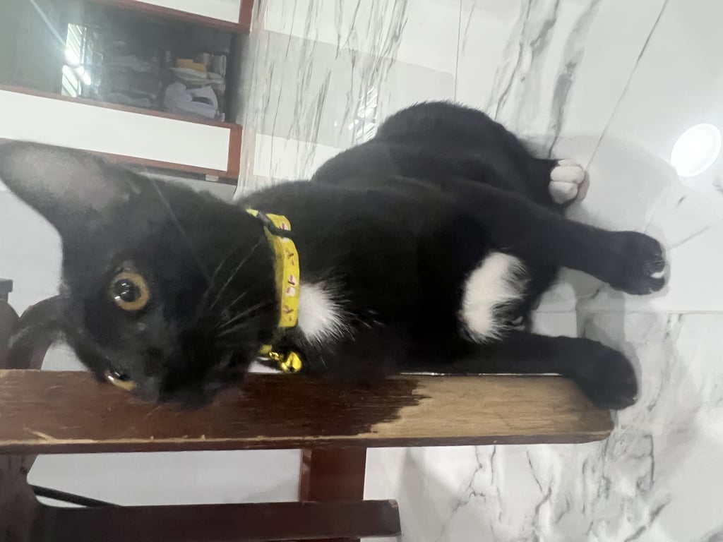 รอยตำหนิ: ใส่ปลอกคอสีเหลือง มีกระดิ่งนิสัยใจเย็น เป็นมิตร ไม่กัดคน เข้ากับคนง่าย