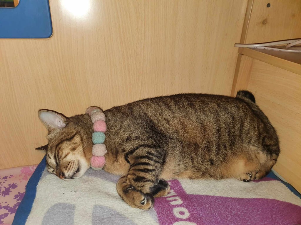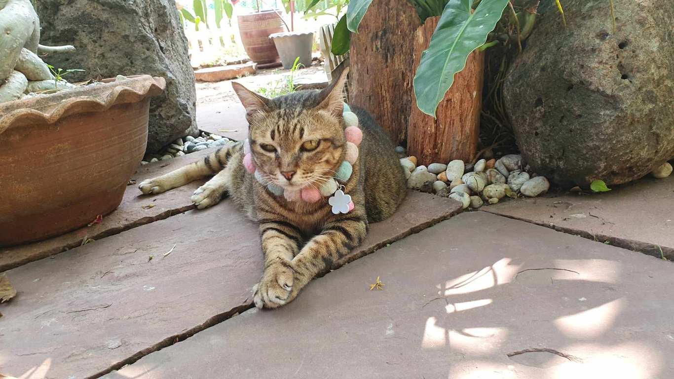 รอยตำหนิ: หางกุด แผงอกสีขาวครีม ท้องห้อย **ไม่ใส่ปลอกคอเป็นแมวใจดี ไม่ดุ รักสันโดษ แต่ขี้ตกใจ