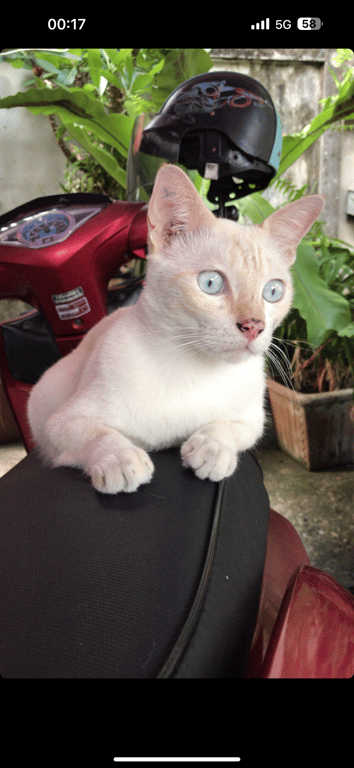 รอยตำหนิ: หางตรงแต่ปลายหางจะงอนิดหน่อยค่ะน้องตัวสีขาว มีสีเหลืองๆแซมนิดหน่อย ตาสีฟ้าค่ะ ตอนหายไม่ๆด้ใส่ปลอกคอนะคะ ใครเจอน้องติดต่อมาได้ตลอดเลยค่ะ