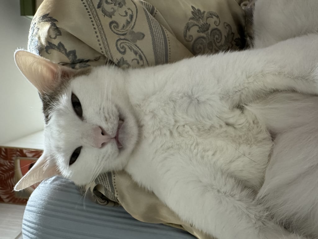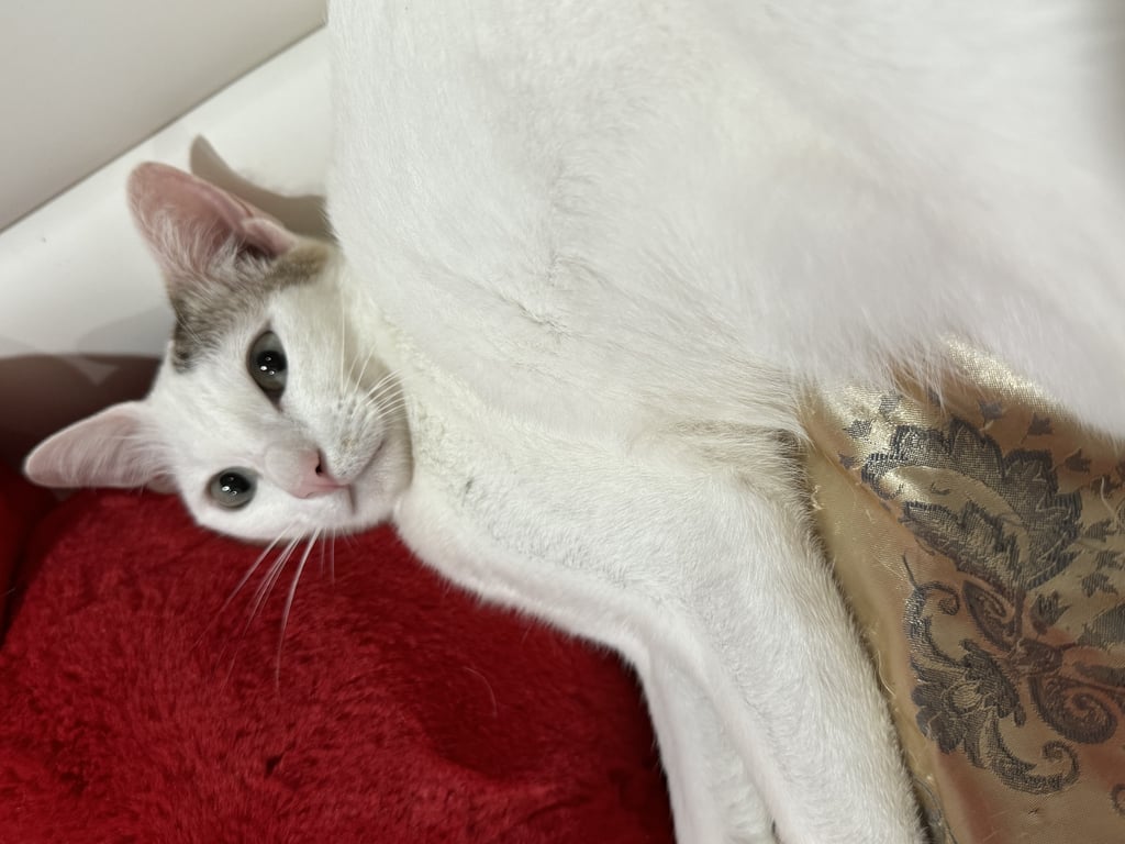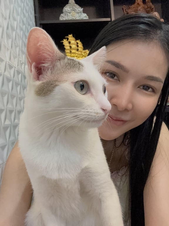 สี: ขาว มีสีเทาตรงหัว หางสีเทา ตาสีเทา