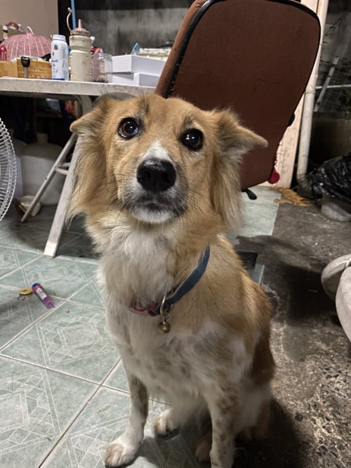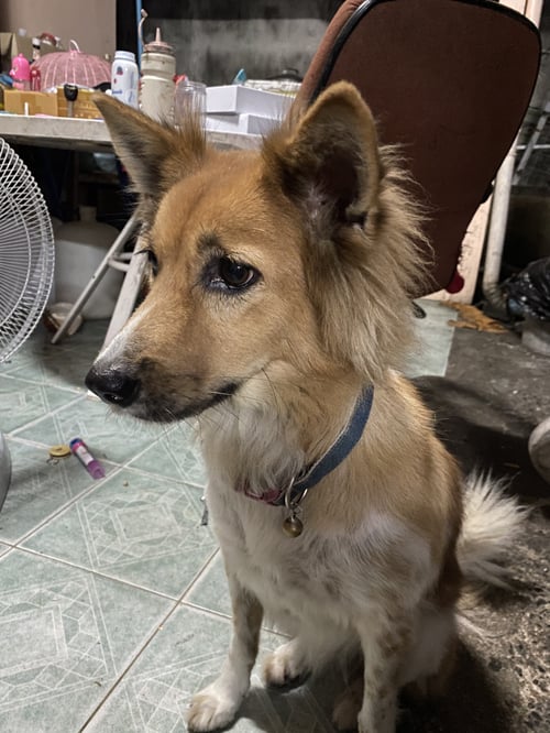 รอยตำหนิ: ขนยาว ปลอกคอสีชมพูกลัวฝน กลัวเสียงฟ้าร้อง