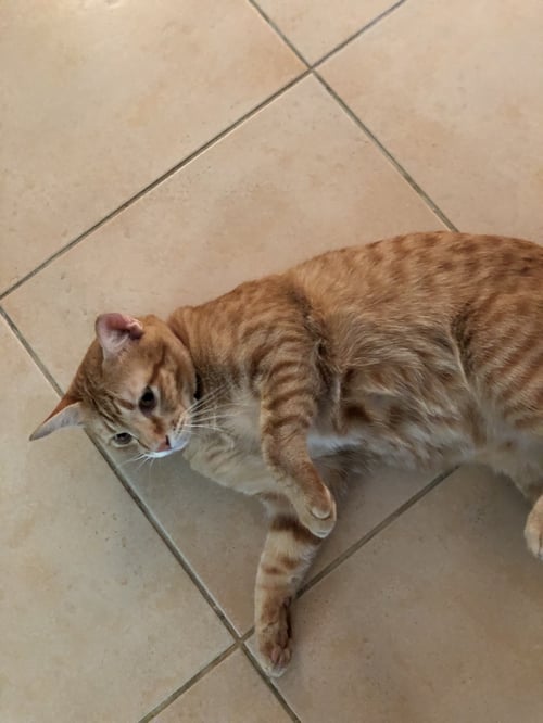 รอยตำหนิ: ขนที่พุงม้วนๆ ปลอกคอสีแดง บริเวณเท้าจะมีสีขนเข้มๆกว่าตรงอื่น