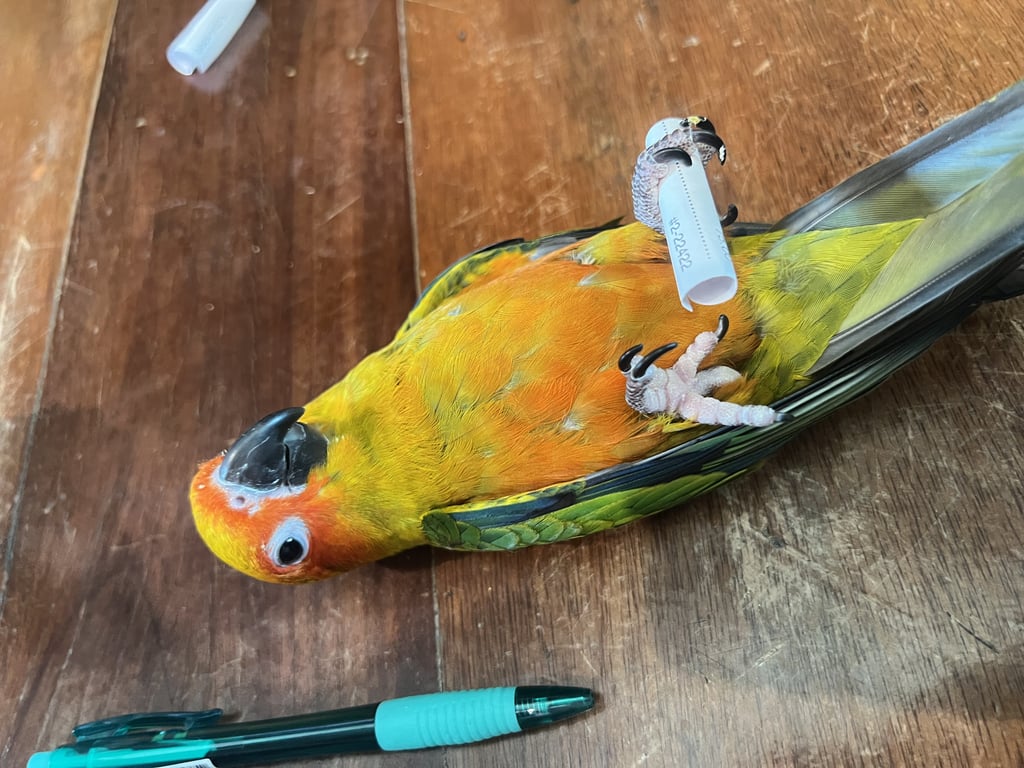 รอยตำหนิ: มีห่วงที่ข้อเท้าติดคนชอบบินเกาะหัวหรือไหล่คนโดยไม่กลัว เวลาหิวร้องเสียงดังมาก แก๊กๆๆ