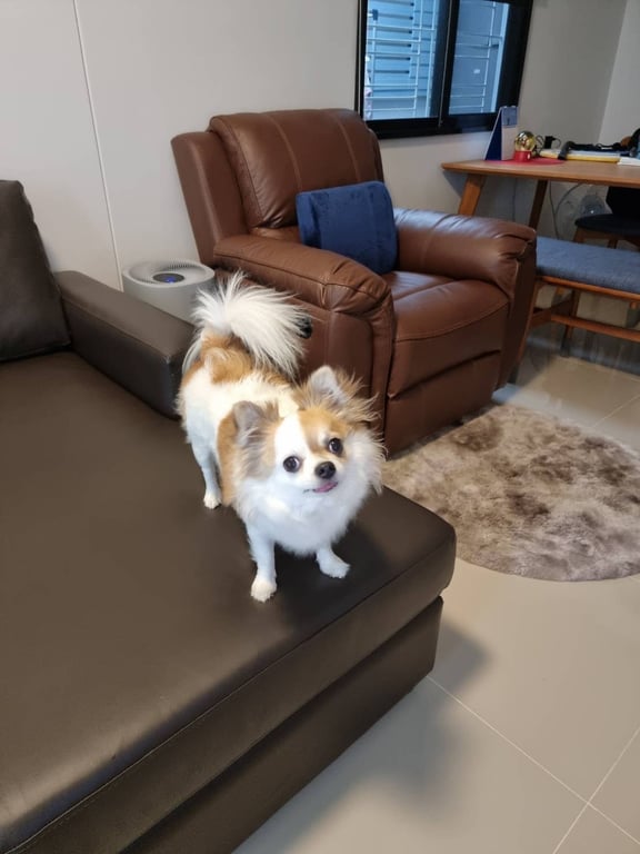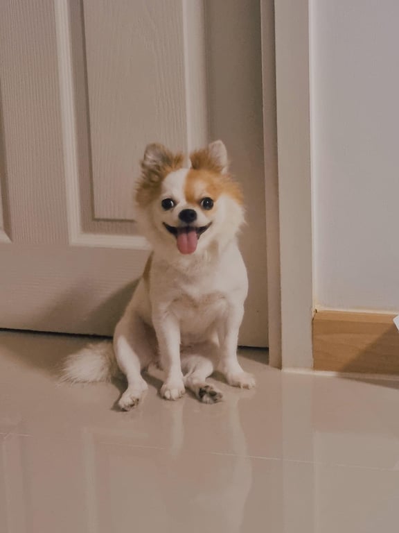 รอยตำหนิ: สีน้ำตาลบนหน้าครึ่งนึงฉลาด ขี้เล่น กินเก่ง ไม่อยู่นิ่ง กลัวคน ไม่ขอบออกนอกบ้าน เมารถ