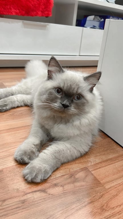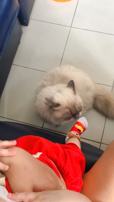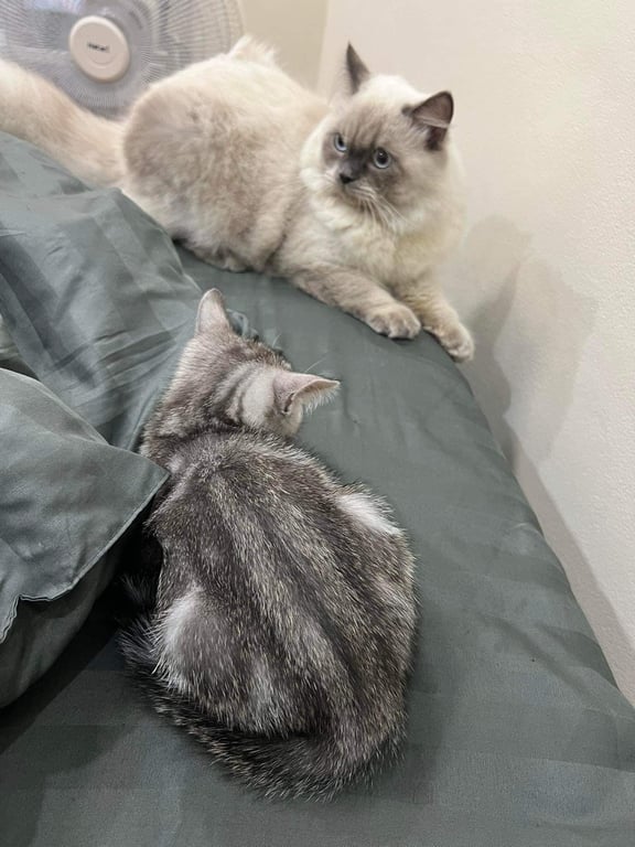 สี: สีขาวออกเทาๆ หน้าดำหูดำ ลำตัวออกเทาๆน้ำตาล ตาสีฟ้าถ้าที่มืดๆตาสีแดง ขนยาว