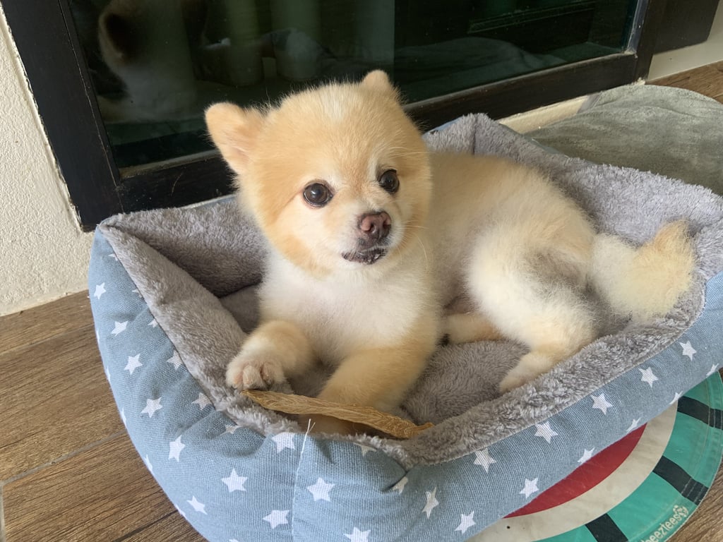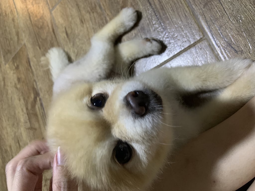 รอยตำหนิ: ขนสั้น เป็นblack skinบริเวณก้น ไม่สวมปลอกคอ หางม้วนเล็กน้อยชอบเห่า แต่ไม่ดุร้าย ไม่กัด เก่งกับสุนัขตัวอื่นแต่จริงๆแล้วกลัวมากถ้าไม่มีเจ้าของอยู่ด้วย นิสัยร่าเริง ขี้อ้อน เป็นมิตรกับคน น้องเป็นโรคหัวใจต้องทานยาทุกวัน