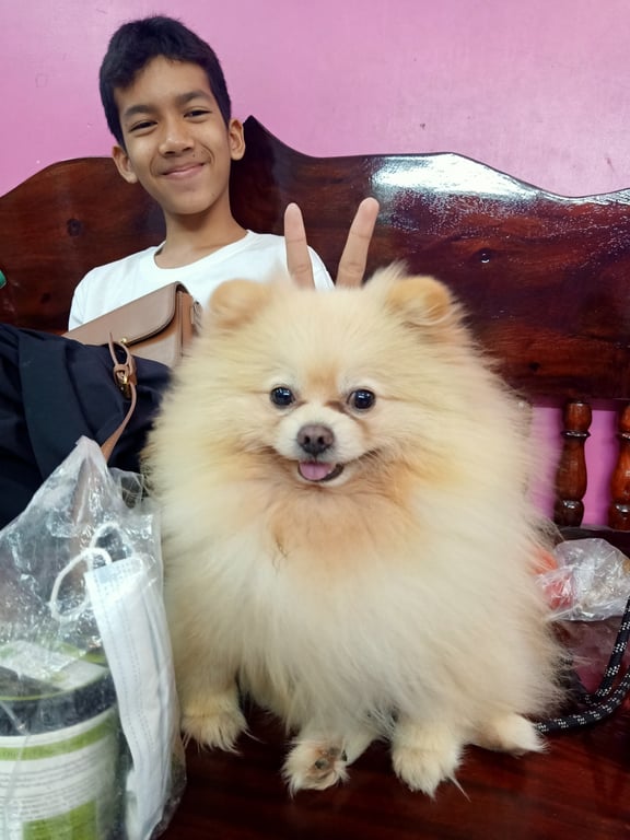 รอยตำหนิ: ถักเปียที่หาง ตาทั้งสองข้างมีรอยน้ำตาไหลขี้อ้อน ขี้เล่น ชอบเที่ยวจะวิ่งขึ้นรถมอเตอร์ไซค์(ตรงที่วางเท้า)