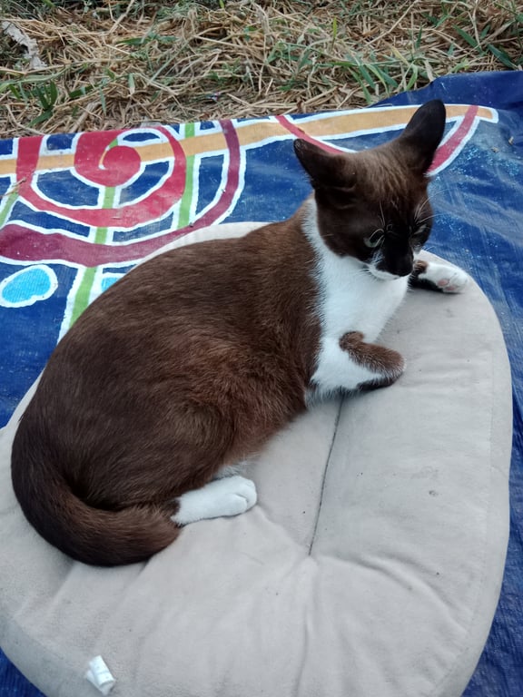 รอยตำหนิ: มีรอยทำหมันข้างตัว สีขนจะไม่เหมือนสีเดิมขี้อ้อน ไม่กลัวคน