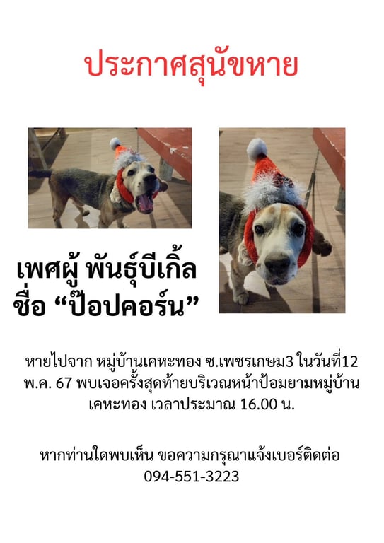รอยตำหนิ: มีผื่นแดงที่ขาอายุประมาณ 13 ปี มีปลอกคอสีม่วง