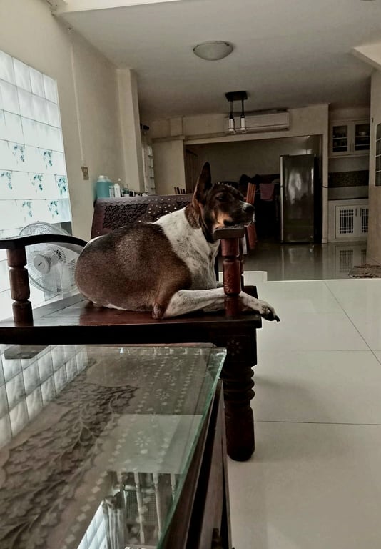 รอยตำหนิ: หูตั้งข้างหนึ่ง ค่อนข้างอ้วน