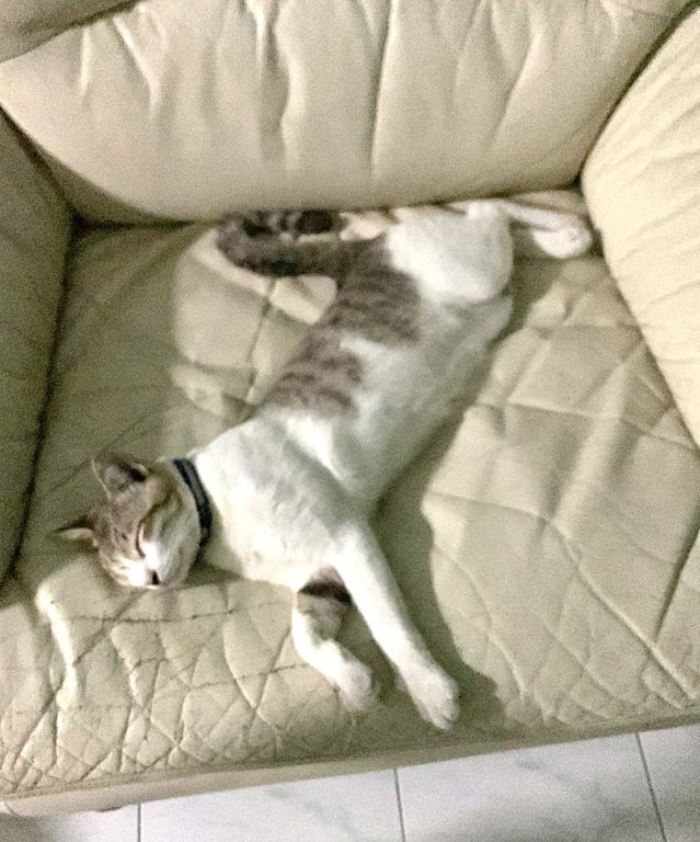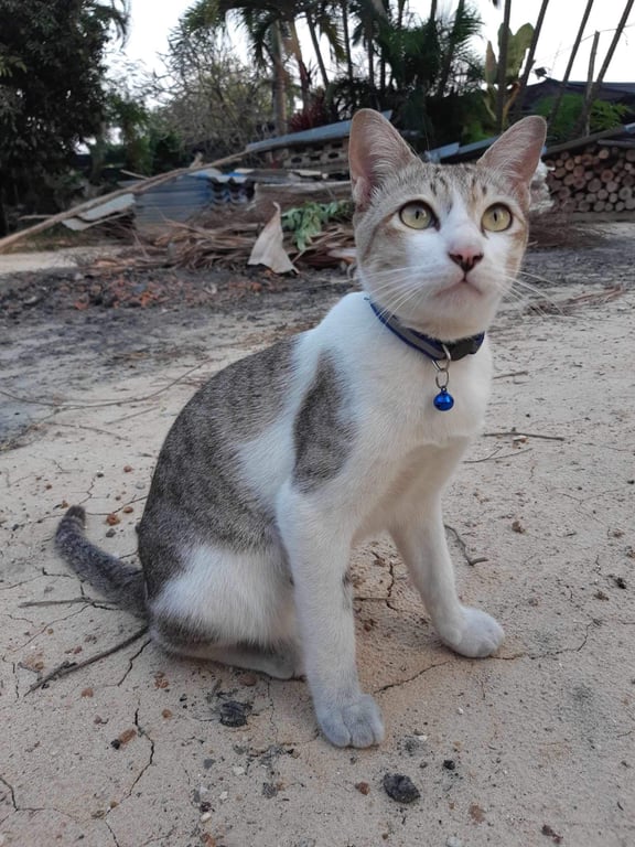 รอยตำหนิ: ปลอกคอสีน้ำเงิน สะท้อนแสงได้อ้อนคน ชอบร้องแล้วเดินมานอนทิ้งตัวข้างๆ