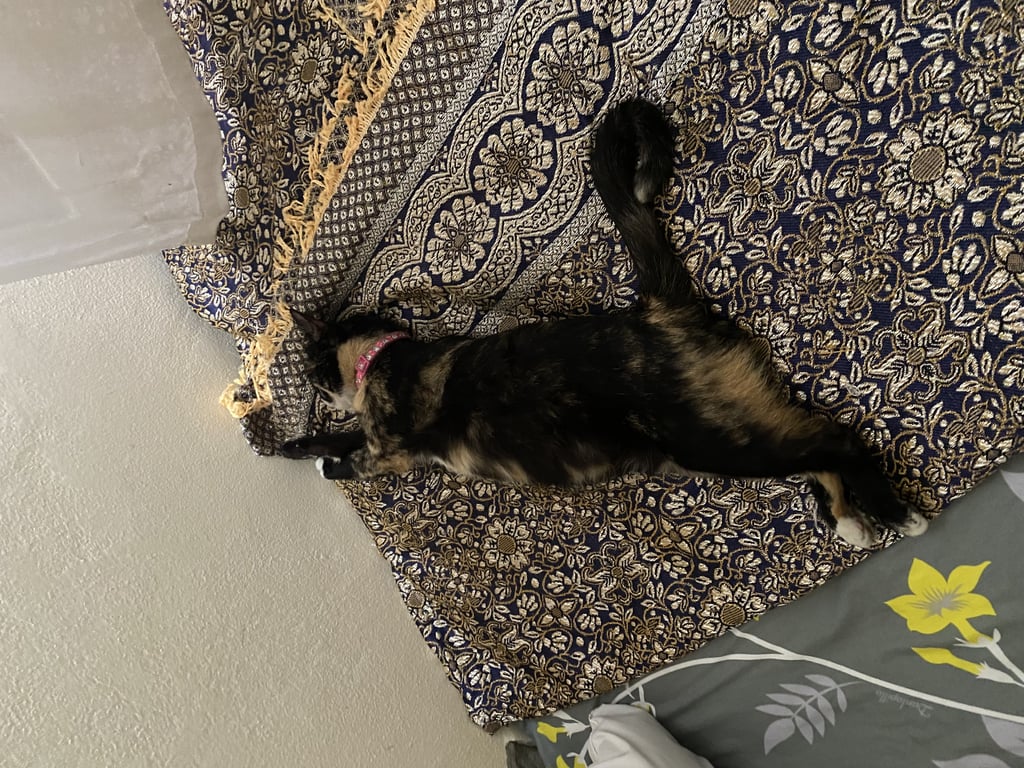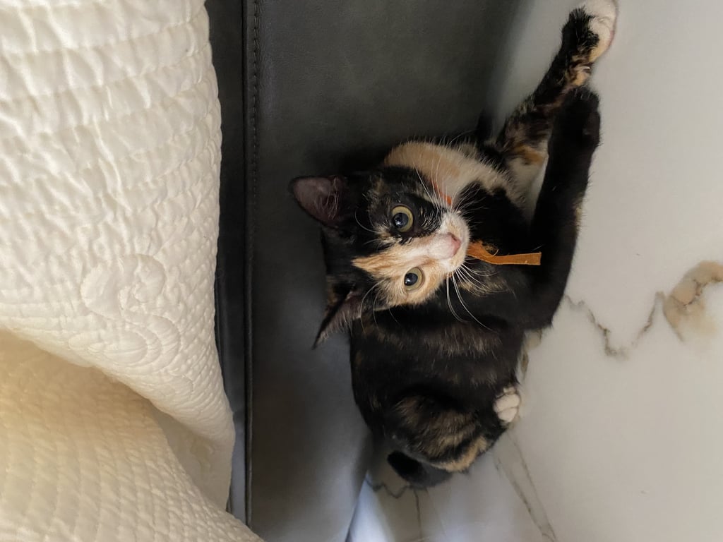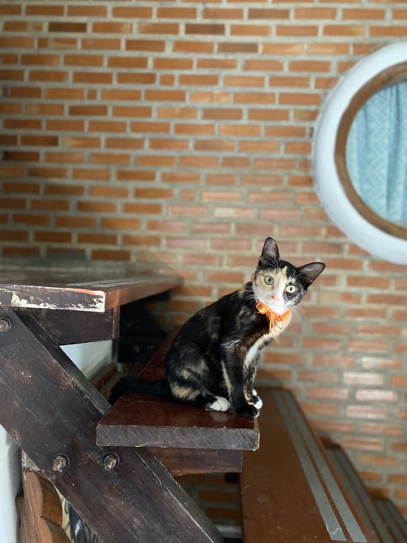 รอยตำหนิ: หน้าซ้ายสีส้ม ขวาสีดำ หางตรง ขนบริเวณอวัยวะเพศแบ่งเป็น 2 สี ตัวไม่ใหญ่ก่อนหายไปใส่ปลอกคอสีชมพูลายแมว ไม่ดุ ร้องเสียงเบา ตัวเล็กๆมินิ หางตรงออกสีดำ หน้าและอวัยวะเพศแบ่ง 2 สี