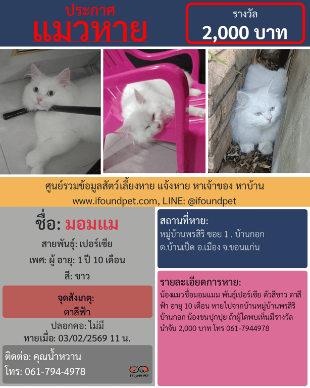 วันนี้ i FOUND PET ได้รวบรวมข้อมูลประกาศที่มีการแจ้งพบแล้วมาให้ไดัดูเป็นแนวทางกันครับ ว่าแต่ละท่านมีวิธีการตามหาน้องๆ อย่างไรกันบ้าน ถึงได้พาน้องๆ กลับบ้านได้ครับ