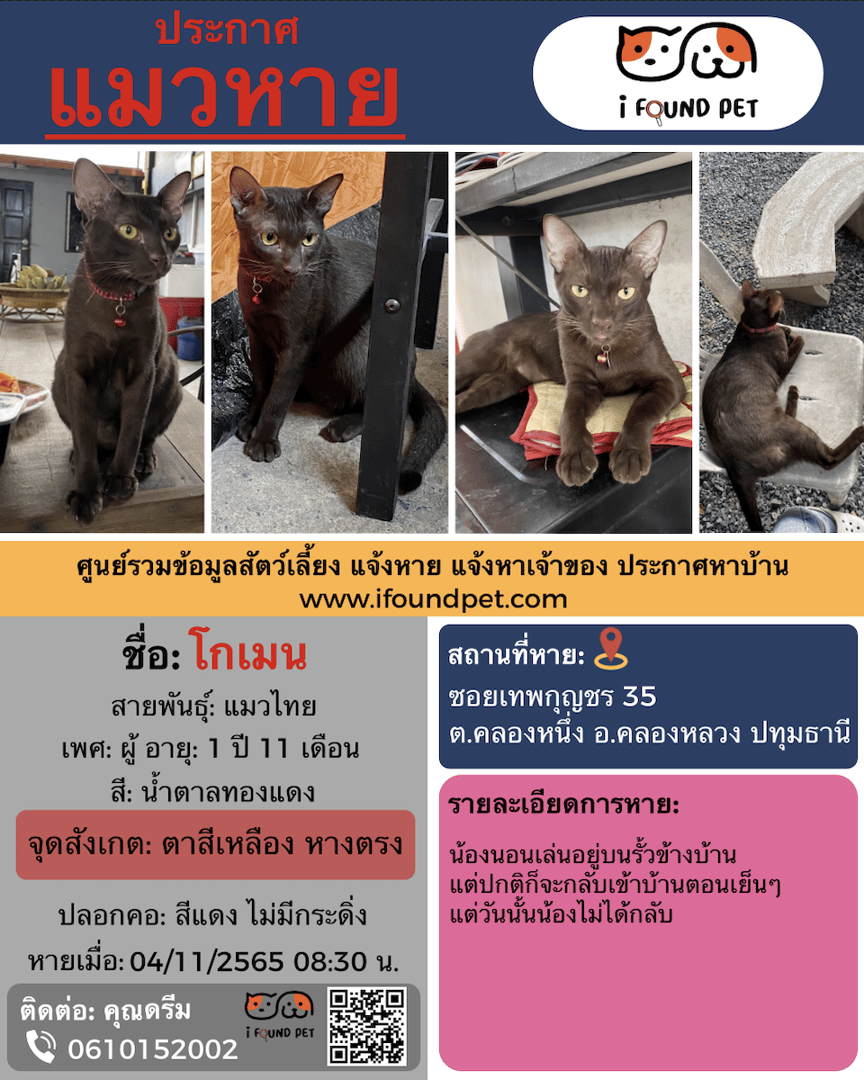 ช่วยกันกดแชร์เพื่อเป็นอีกหนึ่งช่องทางในการตามหาโกเมน