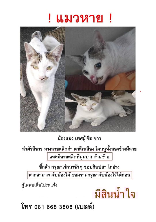 ช่วยกันกดแชร์เพื่อเป็นอีกหนึ่งช่องทางในการตามหาขาว