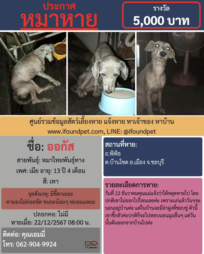 ช่วยกันกดแชร์เพื่อเป็นอีกหนึ่งช่องทางในการตามหาออกัส