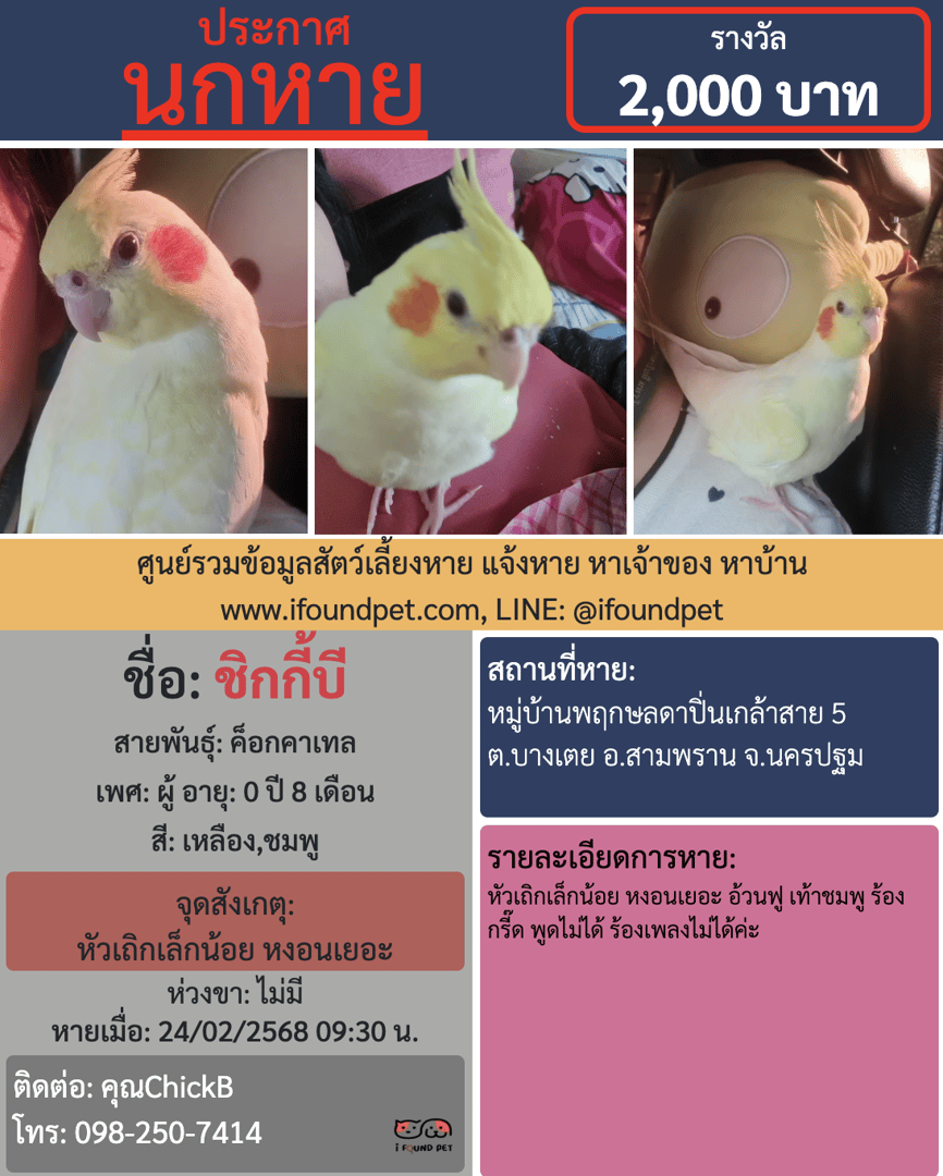 ช่วยกันกดแชร์เพื่อเป็นอีกหนึ่งช่องทางในการตามหาชิกกี้บี