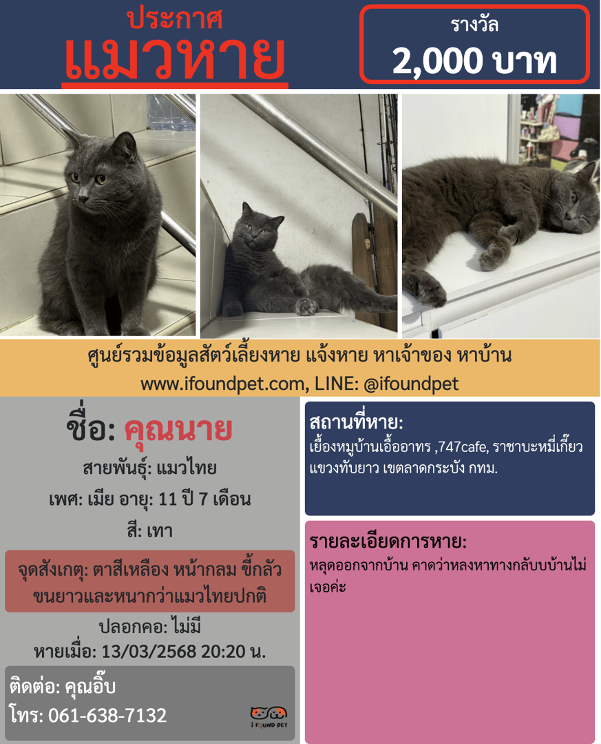 ช่วยกันกดแชร์เพื่อเป็นอีกหนึ่งช่องทางในการตามหาคุณนาย