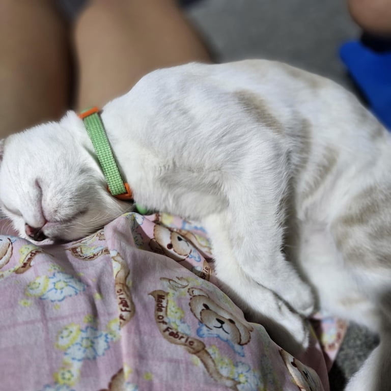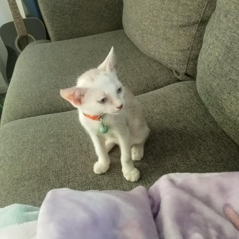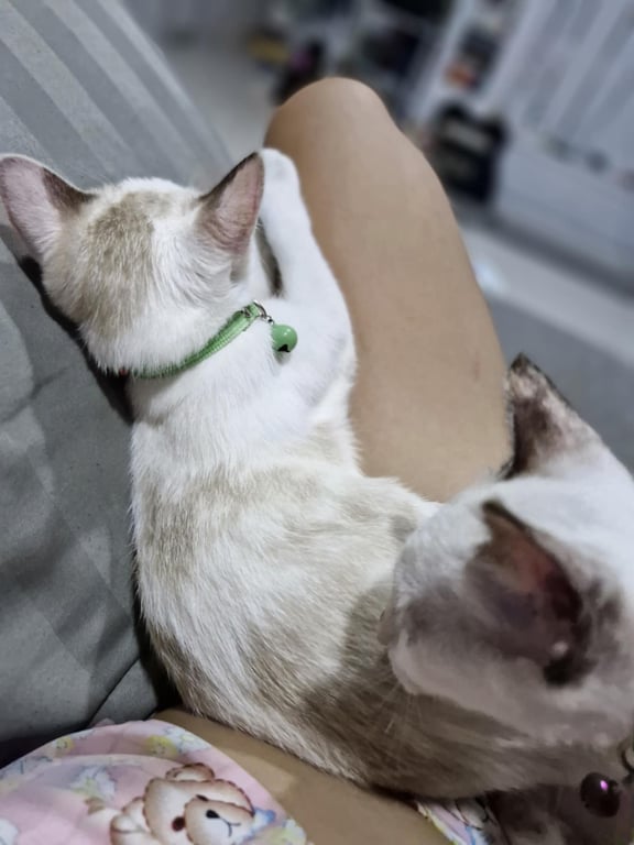หูแต้มน้ำตาลทั้ง2ข้าง ใส่ปลอกคอสีเขียว