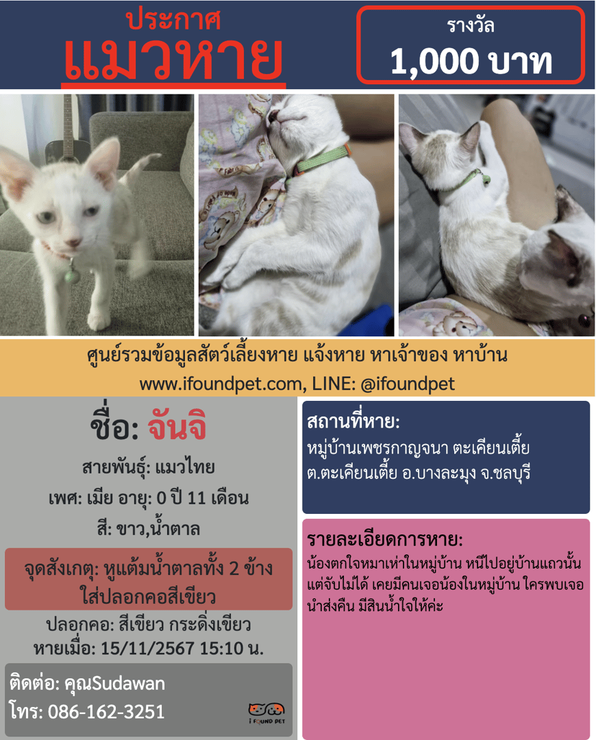 ช่วยกันกดแชร์เพื่อเป็นอีกหนึ่งช่องทางในการตามหาจันจิ