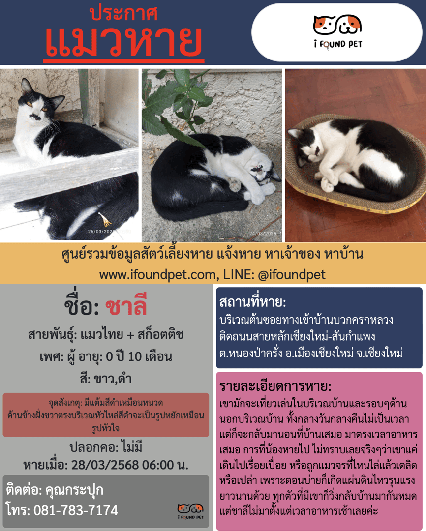 ช่วยกันกดแชร์เพื่อเป็นอีกหนึ่งช่องทางในการตามหาชาลี