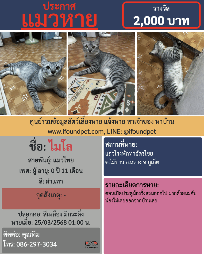 ช่วยกันกดแชร์เพื่อเป็นอีกหนึ่งช่องทางในการตามหาไมโล