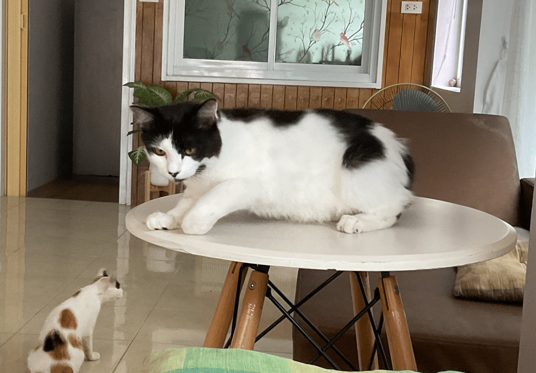 ค่อนข้างชอบซ่อนตัว เสียงร้องจะไม่ค่อยดัง ตัวค่อนข้างใหญ่ ตอนหายไปน้ำหนักประมาณ 6 กิโลกรัม