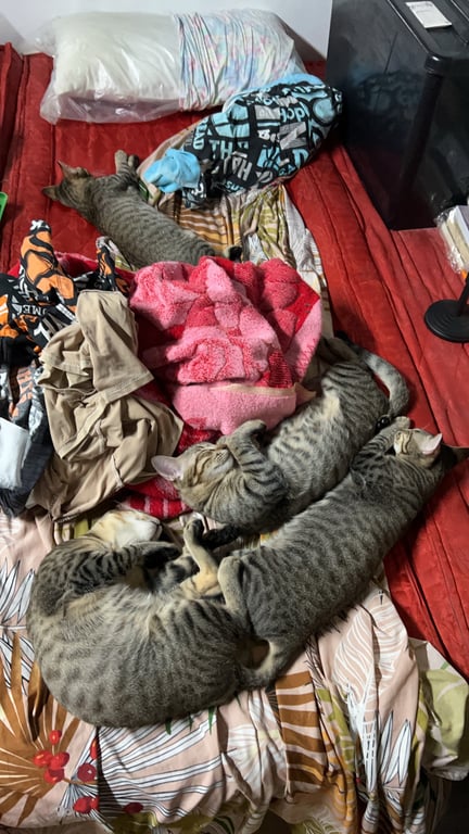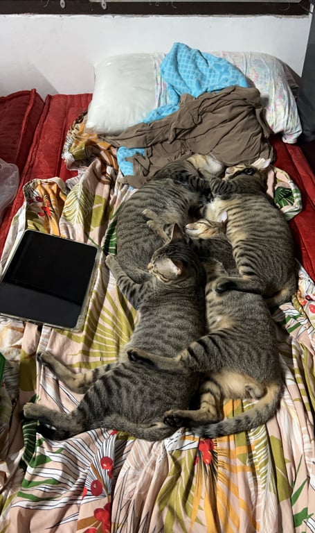 ปกติน้องจะชอบออกไปล่าจิ้งจกตอนกลางคืนกับพี่น้องของเขาอยู่บริเวณบ้าน ไม่เคยไปไกลจากประตูรั้วบ้าน และกลับมาทุกครั้งในตอนเช้า (ในรูปน้องจะมีสีเข้มกว่าตัวอื่นนะคะ ไม่มีรูปเดี่ยวเลย)