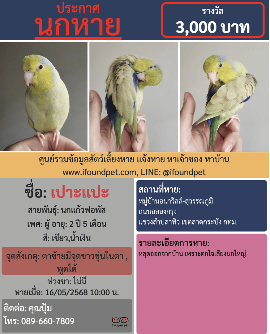 ช่วยกันกดแชร์เพื่อเป็นอีกหนึ่งช่องทางในการตามหาเปาะแปะ