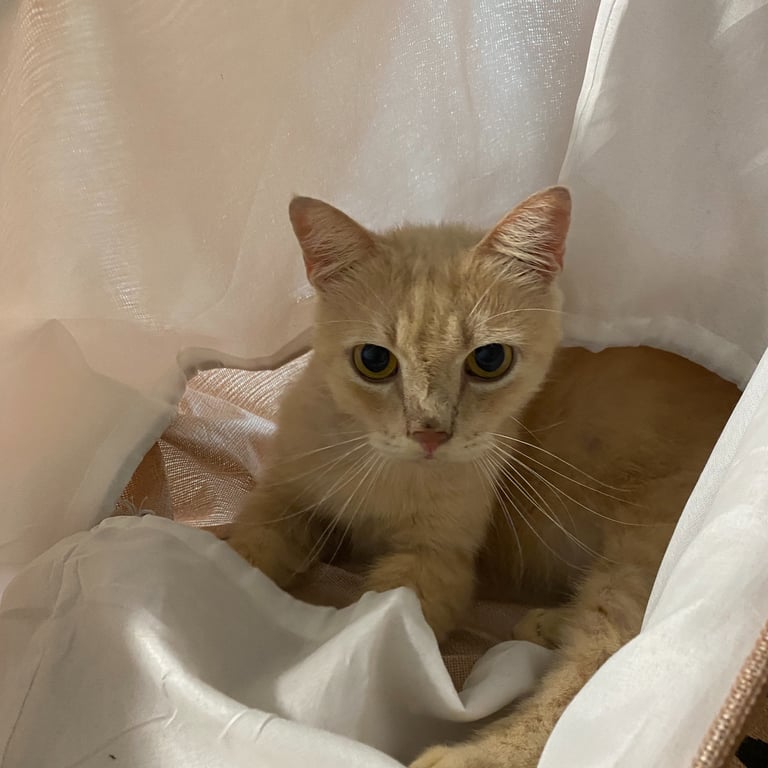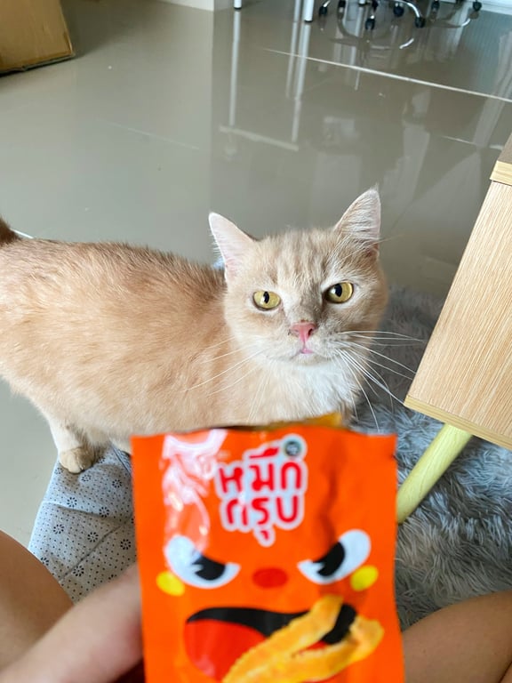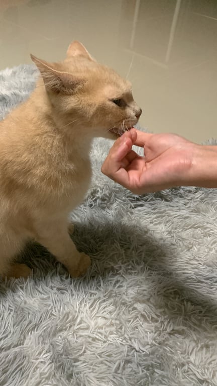 เป็นแมวส้มขนสั้น ขี้อ้อน เชื่อง จับได้ไม่กัด ไม่กลัวคน