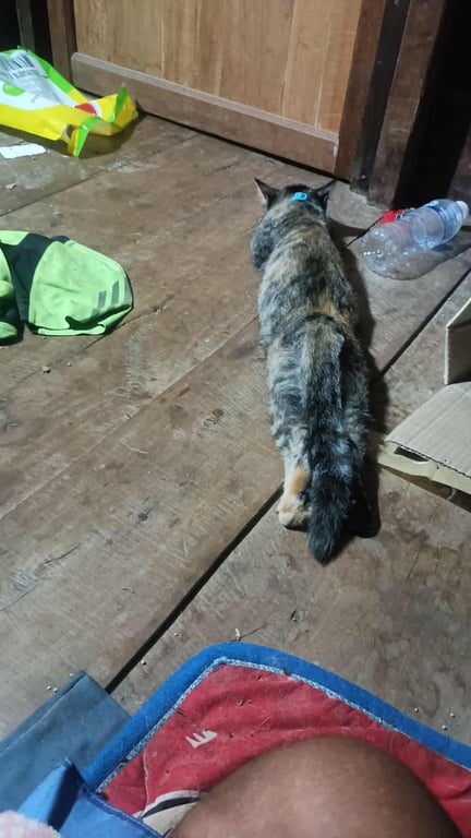 อายุ 5 เดือน ลายสลิด แมวเพศเมีย หางยาวสวย ใส่ปรอกคอสีฟ้า น้องหายแอบลงจากรถตอนเดินทางไปต่างจังหวัด คาดว่าหายแถวสี่แยกบ้านห้วยยาง จนถึง ขุมคำ ค่ะ