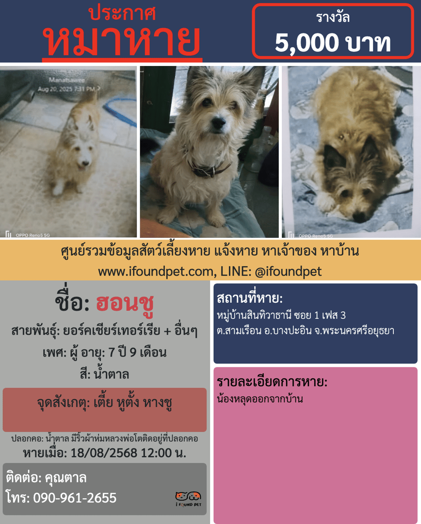 ช่วยกันกดแชร์เพื่อเป็นอีกหนึ่งช่องทางในการตามหาฮอนชู
