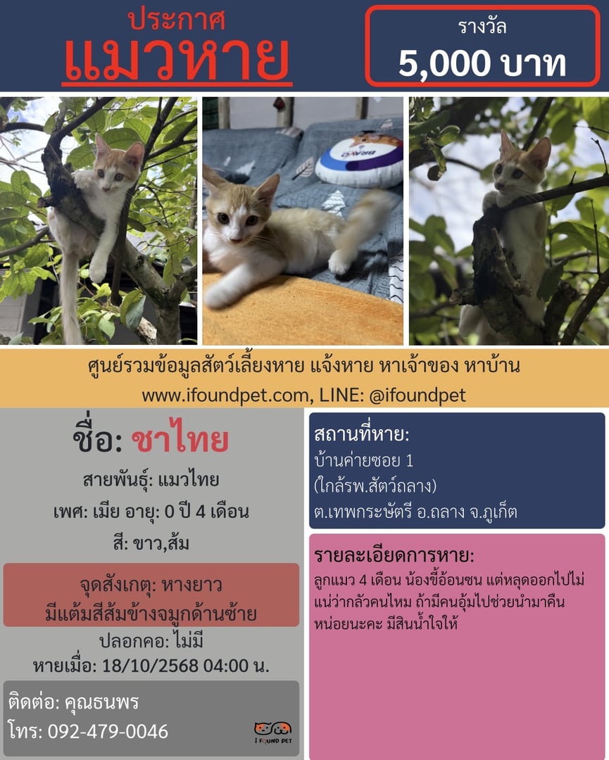 ช่วยกันกดแชร์เพื่อเป็นอีกหนึ่งช่องทางในการตามหาชาไทย