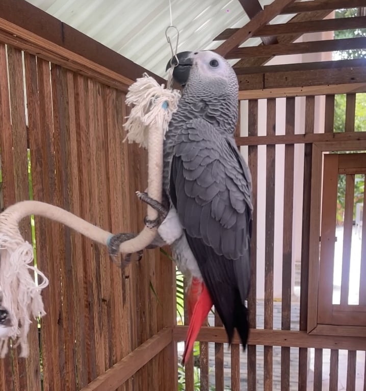 มีเล็บสีขาว หางแดง มีห่วงที่ขา1ข้าง
