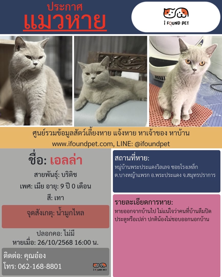 ช่วยกันกดแชร์เพื่อเป็นอีกหนึ่งช่องทางในการตามหาเอลล่า