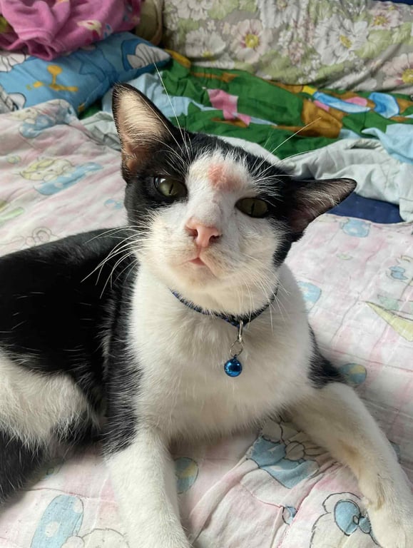 จมูกไม่เท่ากัน แผลเป็นที่แถวๆหนวด ปลอกคอสีน้ำเงิน