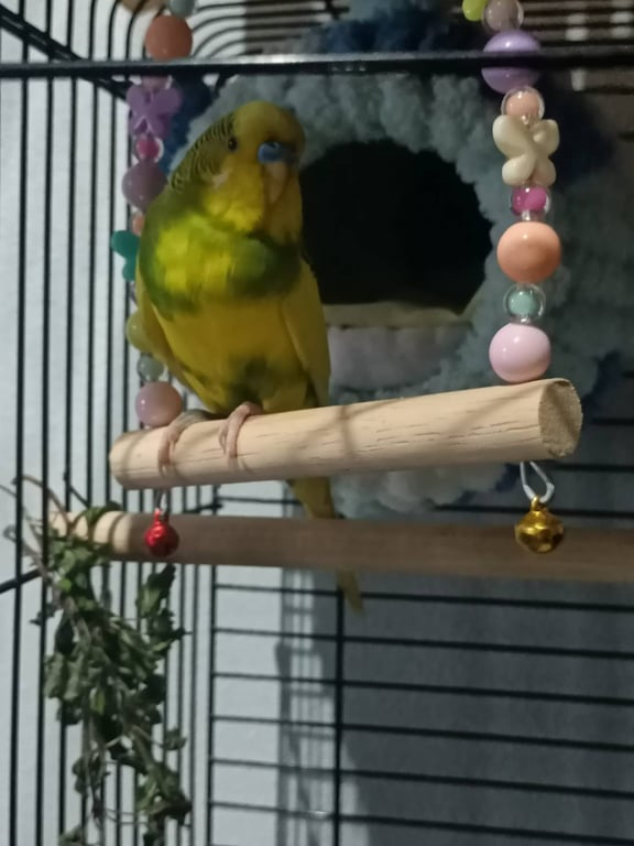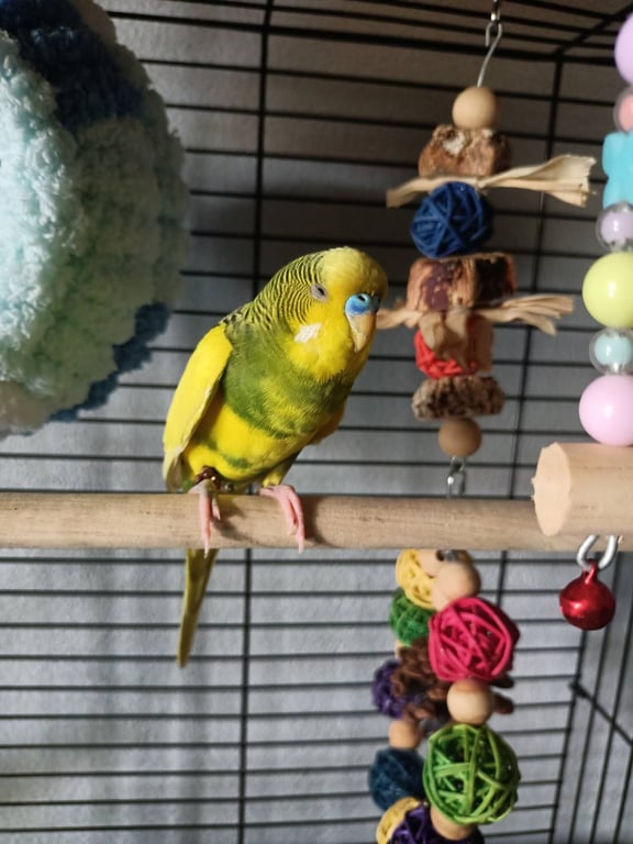 ตัวสีเหลืองเขียว จมูกสีน้ำเงินเข้ม แก้มมีขนสีขาว เท้าขวามีแผล เจ็บเท้า หางยาว ค่อนข้างตกใจง่าย ยังไม่ค่อยคุ้นชินกับคน