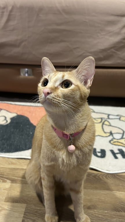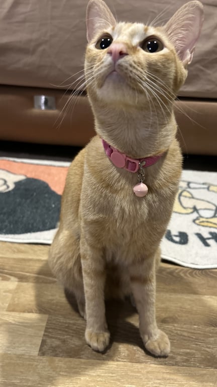 มีปลอกคอสีชมพู(ถ้ายังไม่หลุดหาย) นิสัยขี้กลัว ซ่อนตัวเก่ง