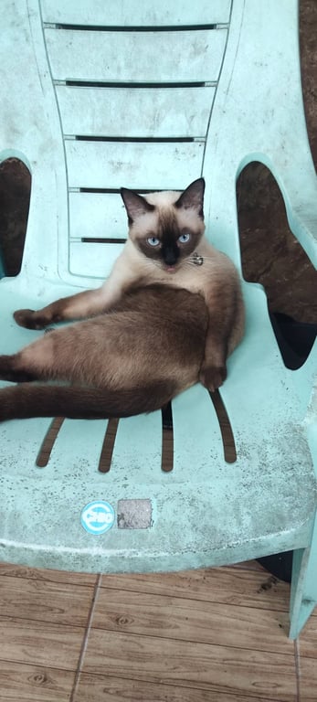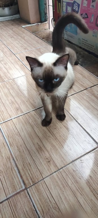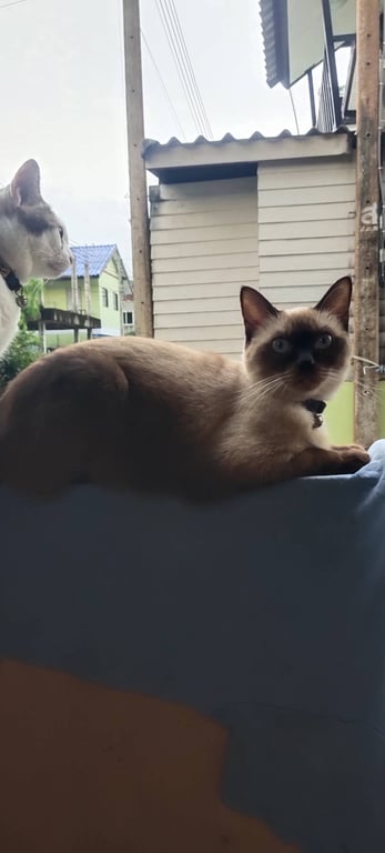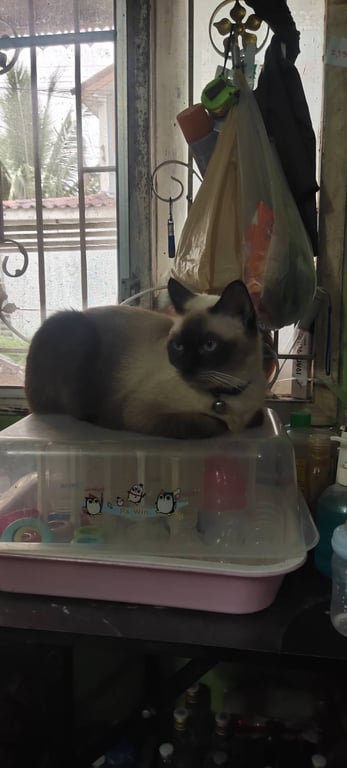 น้องชอบออกมานอนรับลมหน้าบ้านและใต้ต้นไม้แถวหน้าบ้านบ้านอยู่ต้นซอยมีรถส่งของวิ่งเข้าออกทั้งวัน คาดว่าจะมีคนอุ้มน้องไปเพราะเห็นว่าน้องเป็นแมวพันธุ์วิเชียรมาศ น้องเป็นแมวน่ารัก