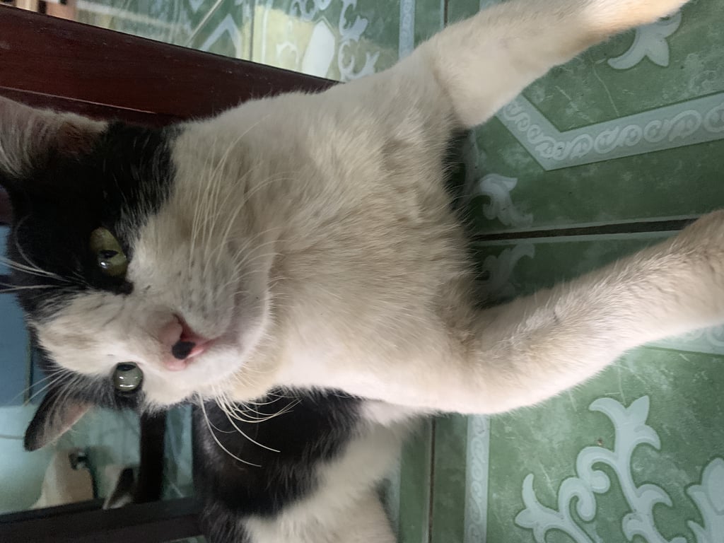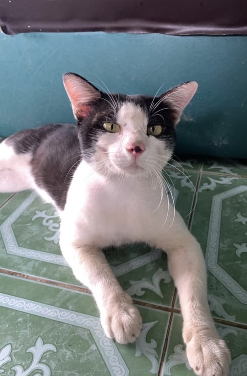 แมวลายวัว มีจุดดำที่จมูก มีรูปหัวใจหลังคอ